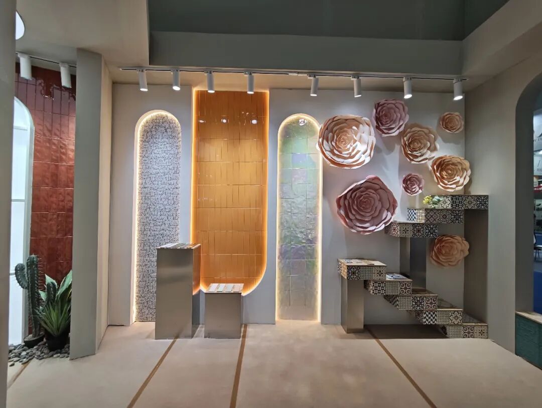 特别值得一提的是,这些小而美陶企或品牌的展位普遍不大,大部分都无法进行产品应用样板间展示,但其重不少陶企或品牌都做到了因地制宜,将产品展示做出了样板间的效果,可谓别出心裁,令人眼前一亮。