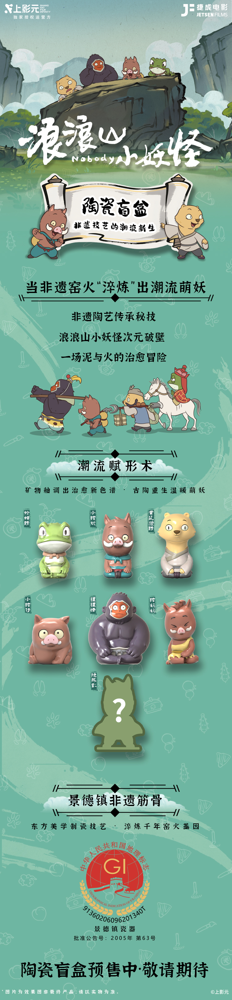 随着国漫电影《浪浪山小妖怪》全国院线热映之际,辰天陶瓷与捷成潮玩精心打造的同名陶瓷盲盒同步