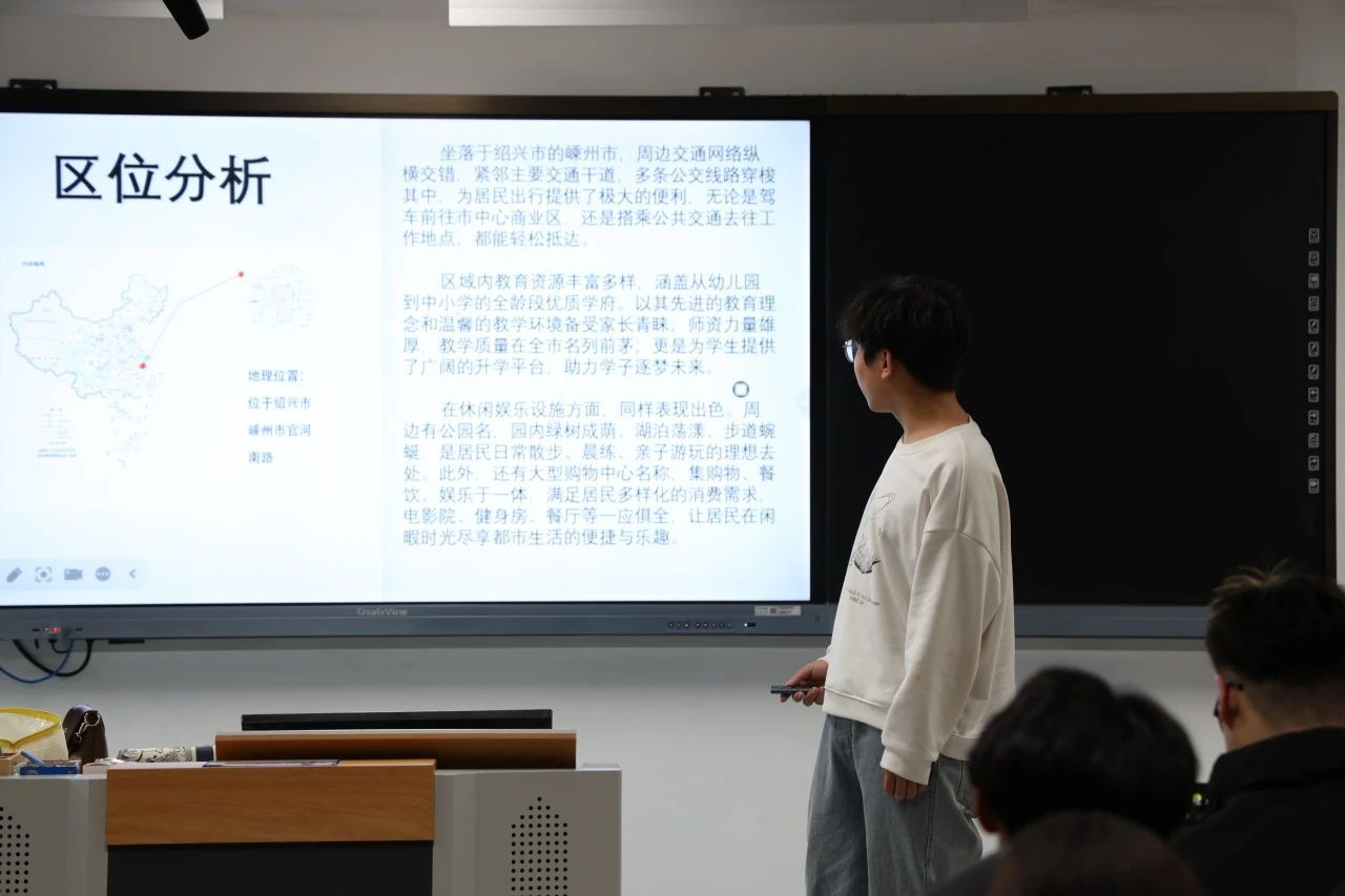 此次活动旨在检验学生对课程知识的掌握与运用,提升其项目展示与表达能力,为未来职场挑战积累经验。 模拟招标会答辩现场气氛热烈,各小组化身竞标团队,围绕精心准备的项目展开激烈角逐。同学们从项目背景、前期分析、方案推导、方案设计、方案成果展示等方面进行了全面阐述,以清晰的逻辑、精美的 PPT 和自信的表达充分展示自身项目优势。张苗老师从专业视角出发,针对项目展示的逻辑性、完整性,竞演同学的表达与姿态等多方面,给予建设性意见和精准点评。