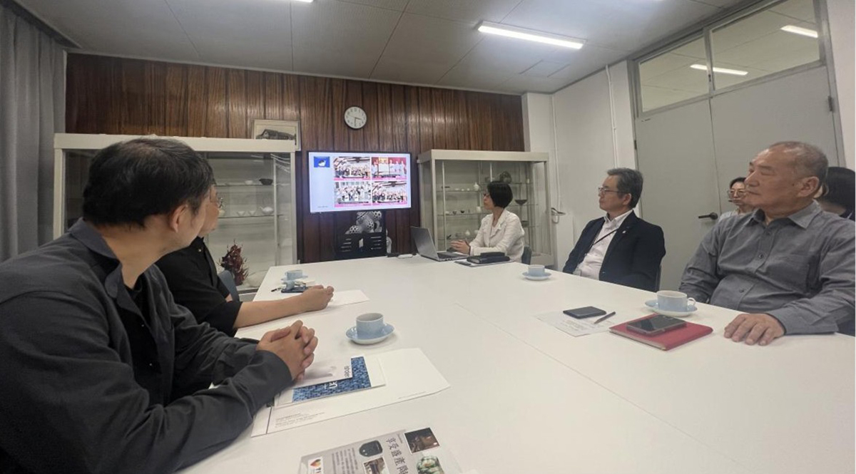 与美浓展组委会工作会谈现场日本多治见市市长高木贵行在市政厅热情接待了余剑峰、李超并举行了简短会谈。他首先代表政府欢迎景德镇陶瓷大学代表团,对景德镇市和景德镇陶瓷大学的卓越发展表示祝贺,特别是对参观2023瓷的旅程-景德镇国际陶瓷艺术双年展印象深刻。他在欢迎致辞中说这是日本东美浓地区政府出资邀请的继36年前景德镇陶瓷大学代表团(周国祯、吕品昌等)中日陶艺界、学界对美浓地区访问后的又一次官方主导的陶艺文化交流活动,意义非凡,期待双方能通过访问加强文化互动。代表团代为转交了景德镇市政府对多治见市政府来华参加 2025 年‘1819’ 景德镇国际陶瓷嘉年华的邀请并传达陶瓷大学校方欢迎日方届时再次访问景德镇陶瓷大学、参观2026景德镇国际陶瓷艺术双年展现场。期待多治见市政府和美浓地区能够积极参与此次活动,进一步增进双方在陶瓷文化、产业等方面的交流,为两地友好合作注入新活力。同时对景德镇市和陶瓷大学的邀请表示感谢,并表示将积极考虑相关安排,争取以此为契机,推动两地政府和高校间在陶瓷艺术领域开展更多务实交流。