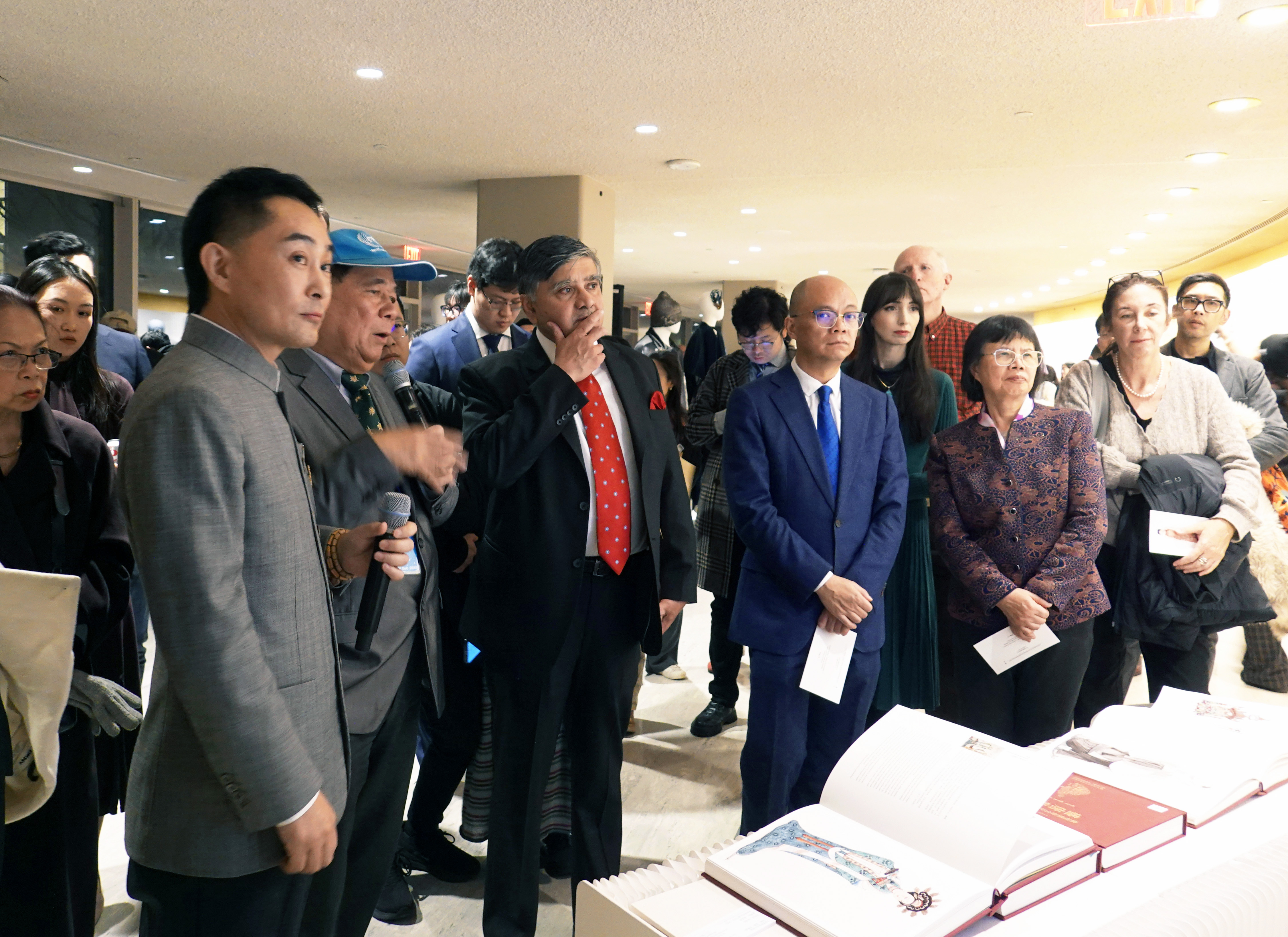 继2024年10月于法国巴黎中国文化中心成功举办首展后,本次展览作为国际巡展的第二站,再次聚焦敦煌主题,将最新的研究与设计成果呈现给国际观众。多国嘉宾、联合国专员、纽约总领事馆教育处代表,以及清华校友等两百余人莅临开幕式现场。