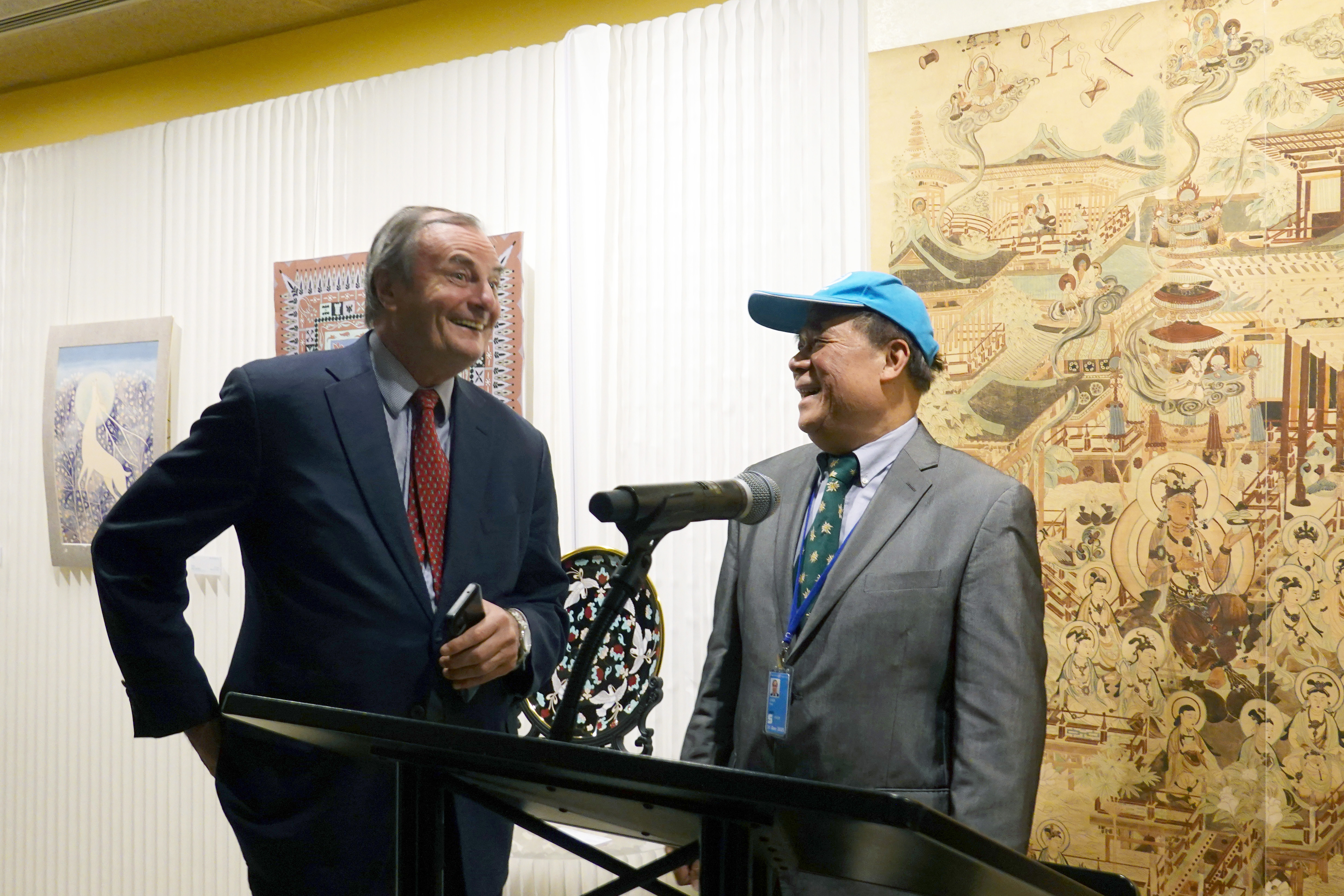 北美清华校友会联合会会长任刚表示,敦煌不仅是中华文明深厚底蕴的象征,更体现着开放、包容与文化交流的精神。她指出,清华大学美术学院师生的创造力为敦煌艺术注入新的时代活力,使敦煌艺术在当代语境中焕发光彩。此次将敦煌艺术研究成果带到联合国展示,是中国文化在国际舞台上的重要呈现,也将清华精神传递给国际社会,进一步体现了当代中国青年以艺术促进文明互鉴、以创意推动文化对话的担当与实力。