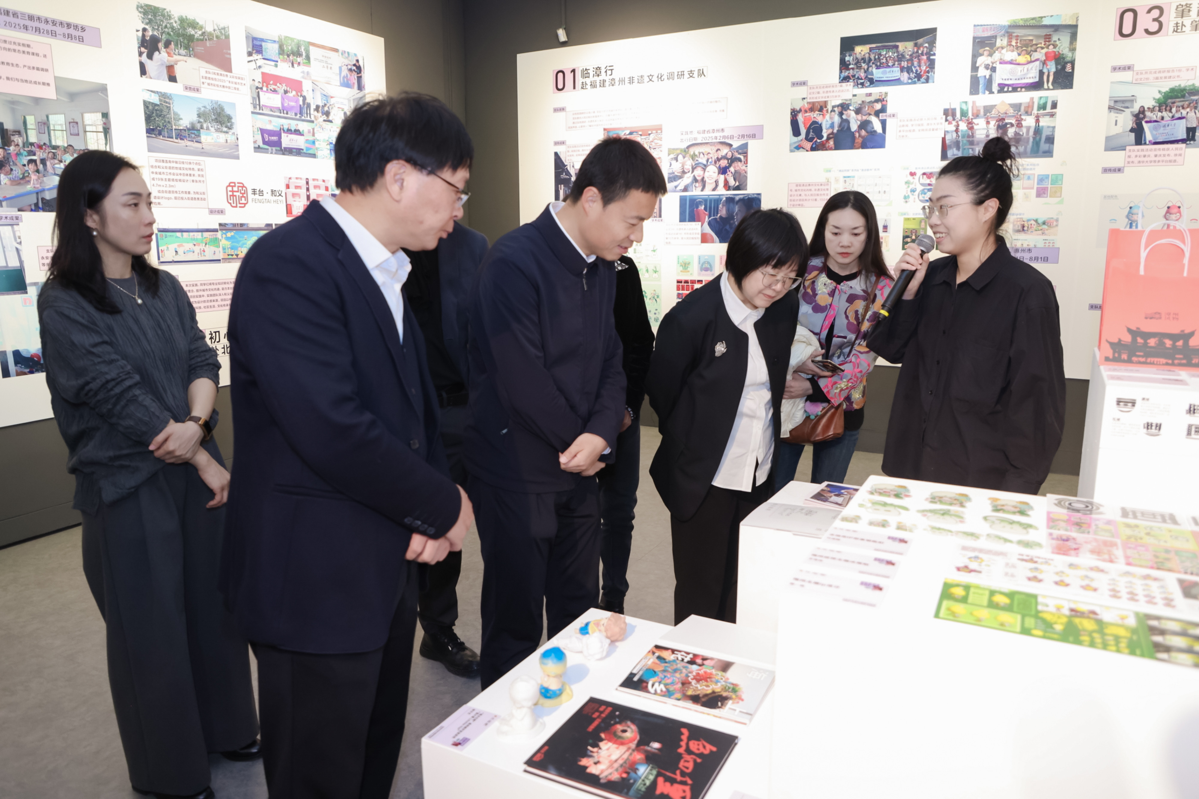 清华美院院长吴琼(前排左三)及嘉宾参观展览