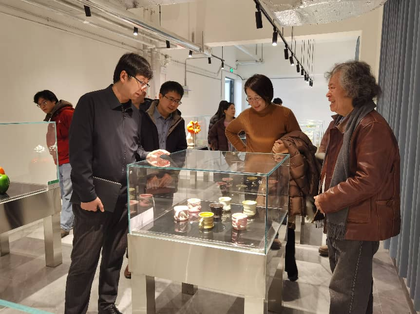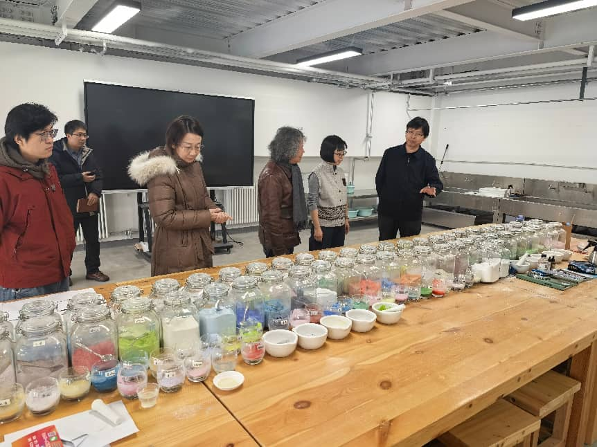 孔亮副院长一行深入手工艺实验室,实地考察学院教学运行情况。在实验室,孔亮仔细查看了陶瓷窑炉、漆艺荫房、金工吊机、首饰珐琅炉、玻璃热成型加工设备等教学设施的配置与使用情况,并观摩一线教学,围绕实践课程设置、工艺制作流程等与师生进行了亲切交谈。