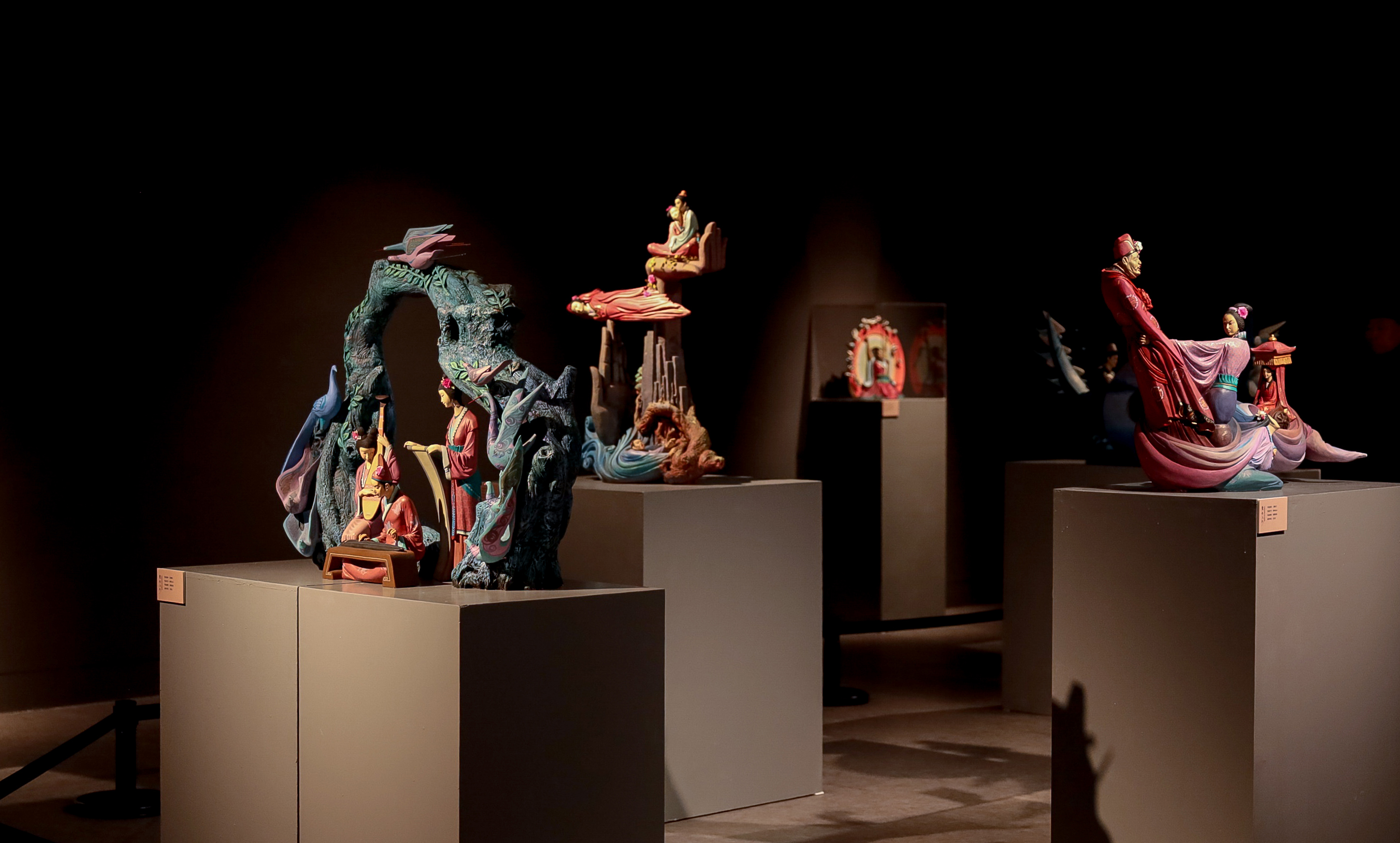 为线,串联彩塑文脉,四代之变一目了然。张錩的《丝绸之路》《十二生肖》《民间故事系列》等经典作品悉数亮相,尽显其以彩塑回应时代的创作轨迹。展览特别汇集廖静文、常沙娜、唐克美等诸多学者的回顾与评述,共证张錩守正创新
