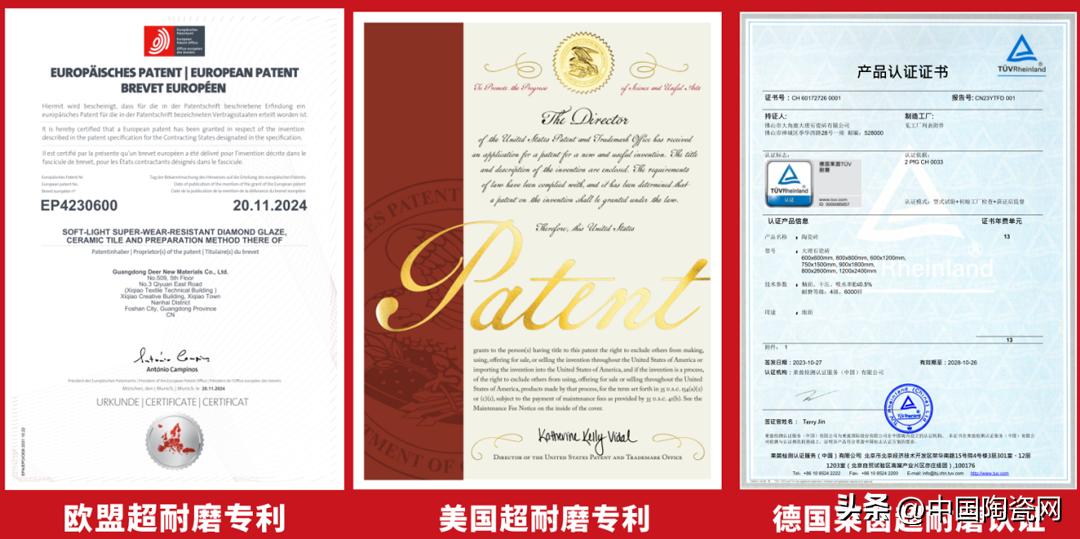 大角鹿以技术、制造、品牌出海为路径,构建全球产业体系。其拥有超耐磨钻石釉等核心专利,技术领先行业,获国际认证。公司在国内外设有六大生产基地,其中马来西亚工厂采用高效生产模式,形成“中国技术+本地制造”优势。产品出口68个国家,服务于多个国际项目,已成为全球超耐磨瓷砖销量第一的品牌。