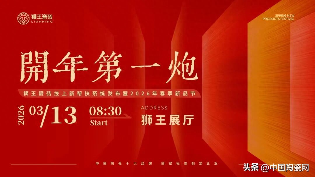 3月13日,狮王瓷砖在总部举办“开年第一炮”活动,发布线上新帮扶系统及2026年春季新品。面对行业调整与市场压力,狮王集团董事长刘宝与小红书代表、营销专家胡俊及全国近三百位经销商共聚一堂,探讨破局路径。