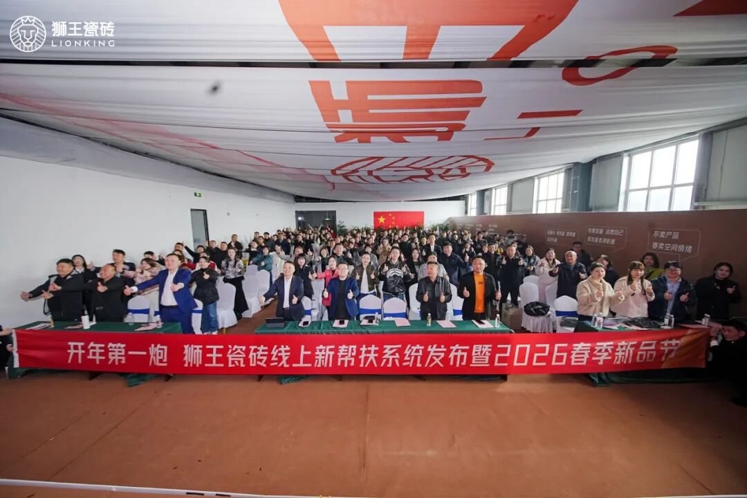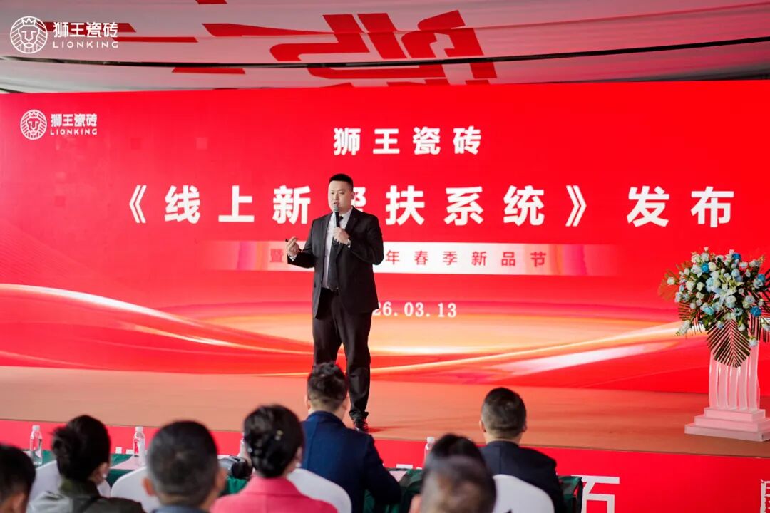 3月13日,狮王瓷砖“开年第一炮——线上新帮扶系统发布暨2026年春季新品节”在总部展厅盛大举行。面对2025年陶瓷行业深度调整、市场寒意未消的复杂环境,狮王瓷砖以一场集战略发布、新品亮相、实战赋能、情谊共聚于一体的行业盛会,为2026年终端破局发展定下流量赋能、价值制胜的核心基调。