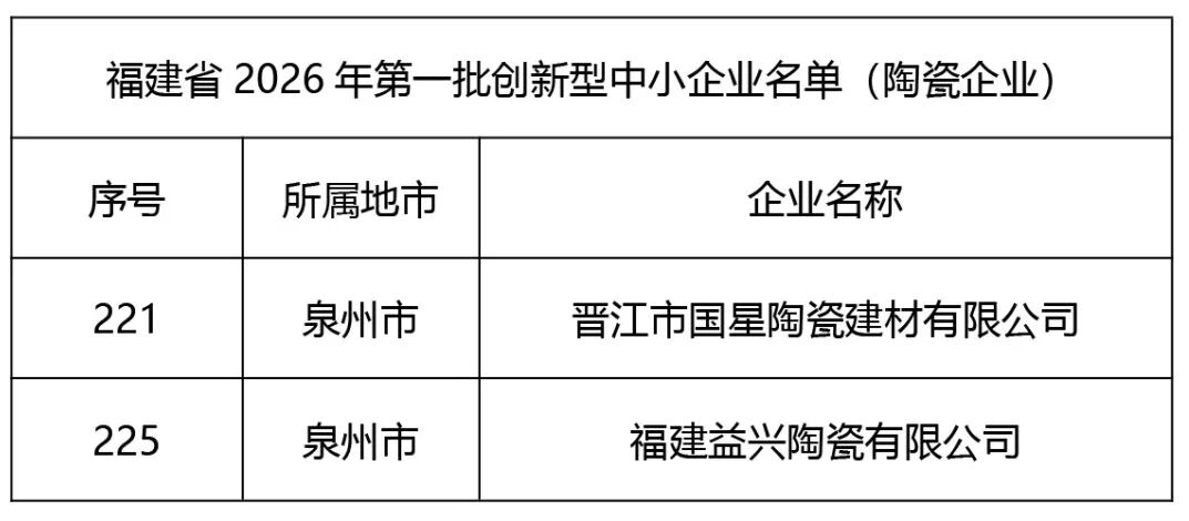 近期,多家陶瓷企业在不同领域获得重要认可。马可波罗、金意陶、简一、欧文莱、东鹏5家企业入选国家知识产权示范企业创建对象。新玻尔、格仕祺、金三角等18家陶企上榜2025年国家级绿色工厂名单。顺辉、金舵、天纬三家企业获得“有家就有佛山造”产业IP授权。国星、益兴两家福建陶企入选该省2026年首批创新型中小企业名单。此外,广东省将116家陶瓷卫浴企业纳入2025年度碳排放配额管理范围,以推动行业绿色低碳发展。