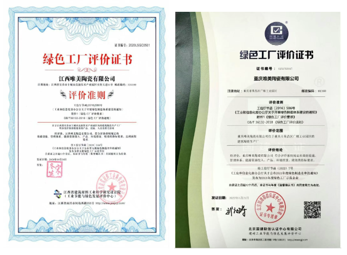 目前,马可波罗控股旗下东莞市唯美陶瓷工业园有限公司、江西和美陶瓷有限公司、江西唯美陶瓷有限公司、重庆唯美陶瓷有限公司、广东家美陶瓷有限公司五个生产子公司均已成功进入国家级绿色工厂名册。