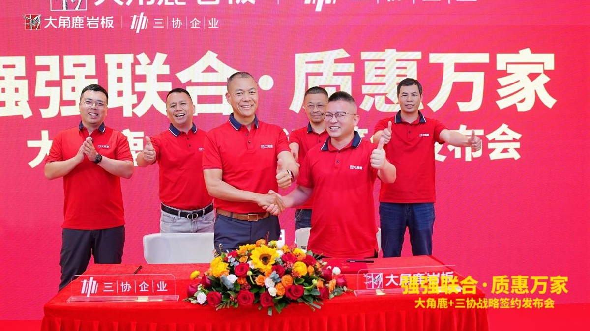 3月19日,大角鹿岩板与三协建材在佛山举行“强强联合·质惠万家”战略签约发布会。面对瓷砖行业深度调整与岩板市场扩容,大角鹿凭借“全球超耐磨瓷砖销量第一”的品牌与技术优势,联合三协的专业智造体系,以“品牌+产能”模式共拓全球岩板市场,为行业与消费者创造新价值。