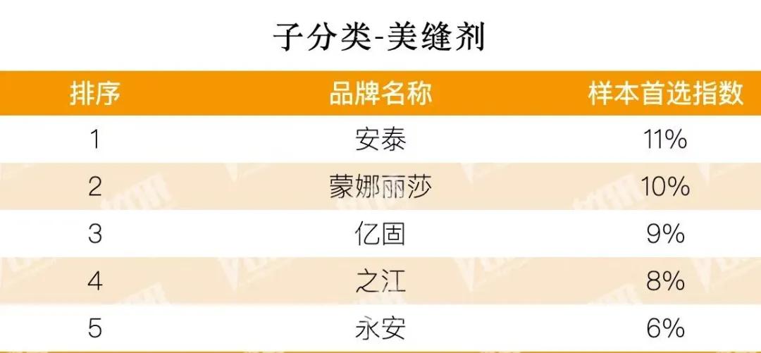 报告显示,在“瓷砖胶类”榜单中,蒙娜丽莎美缝剂以10%的样本首选率排名第二;在“建筑陶瓷类”榜单中,蒙娜丽莎瓷砖以18%的样本首选率位列第二,其岩板产品也以10%的样本首选率在子分类中排名第二。