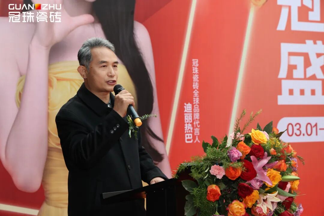 新明珠集团副总经理、冠珠瓷砖品牌总经理潘瀚作为品牌代表发表致辞。他表示,冠珠瓷砖30多年来始终与时代同频,以“人民对美好生活的向往”作为奋斗目标,2026年在产品、服务实现全面升级,切实践行“大美筑家”的承诺。品牌未来也将继续全力支持石家庄冠珠的发展,为当地消费者的美好人居建设贡献冠珠力量。