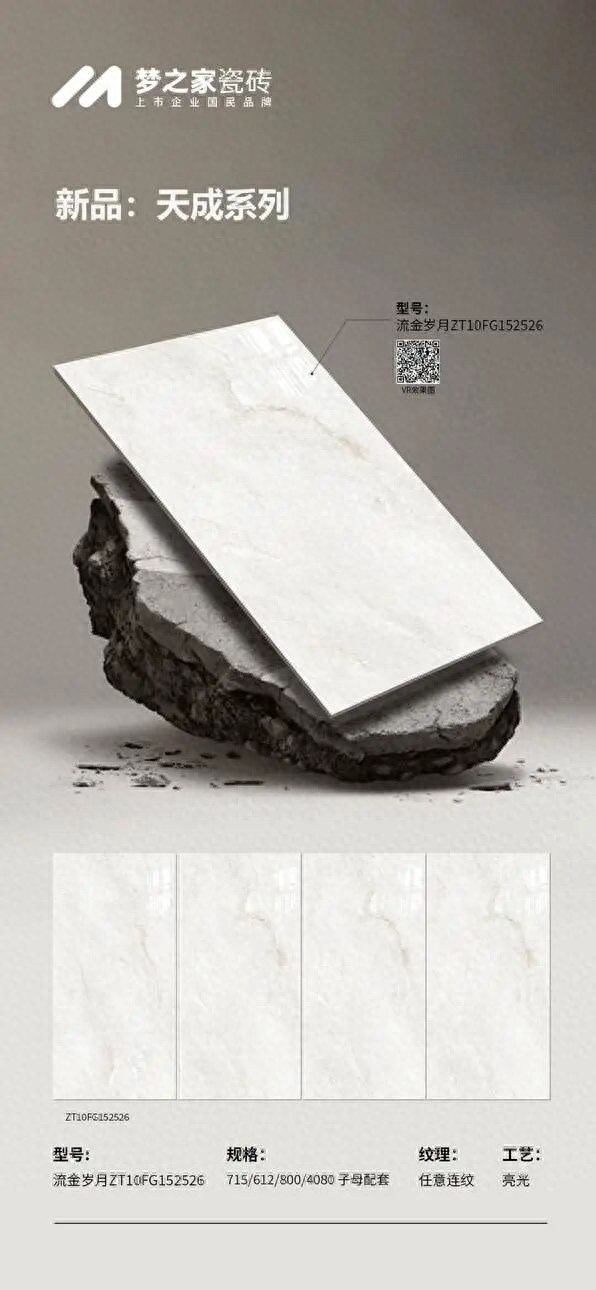 流金岁月系列以经典复古美学为灵感,定格时光的优雅与厚重。纯净奶白色温润通透,柔和提亮空间,适配多样风格。浅金与米灰纹理如天然大理石般蜿蜒舒展,深浅交织,灵动自然。采用“一石四面、任意连纹”设计,拼接后纹理连贯大气,适合背景墙等大面铺贴。风格现代简约兼具轻奢感,可搭配原木、布艺营造温馨氛围,或结合金属、玻璃元素打造精致空间。适用于客厅、卧室等多场景,兼顾美观与实用性。