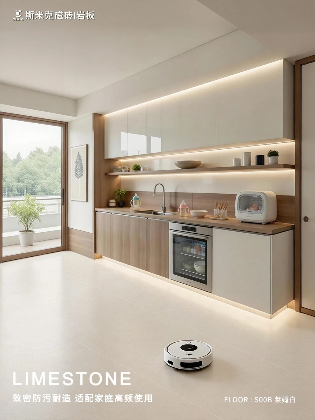 有娃家庭日常清洁频繁,莱姆石采用高温煅烧瓷质坯体,质地致密、防污性出众,日常用扫地机器人、洗地机打扫完全不用担心;同时耐磨抗造,能抵御玩具磕碰和清洁机器摩擦。