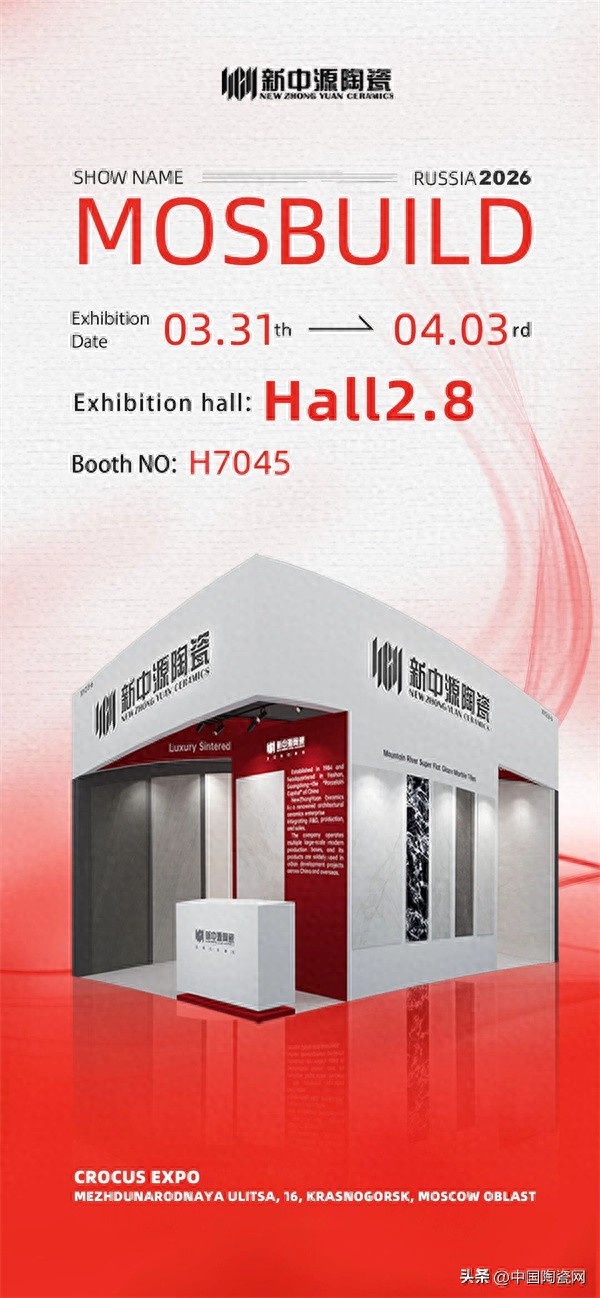 3月31日,第31届俄罗斯莫斯科国际建材展MosBuild 2026在莫斯科Crocus国际会展中心开幕。在“出海”浪潮中,新中源陶瓷携多元产品与空间解决方案亮相,向国际市场展现中国陶瓷在制造与设计领域的持续进步。