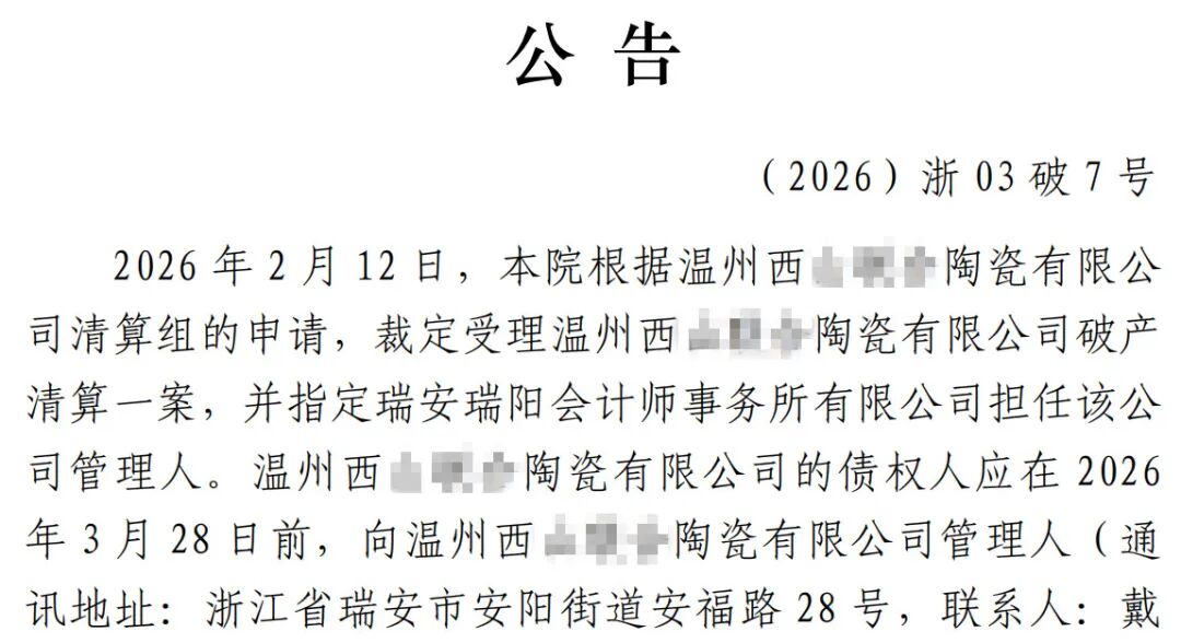 值得注意的是,两家历史悠久的陶企——分别成立于1971年和1993年,虽早已被吊销执照,却在2026年再度被受理破产清算。这反映出行业调整的彻底性:不仅淘汰新企业,也在清理历史遗留问题。