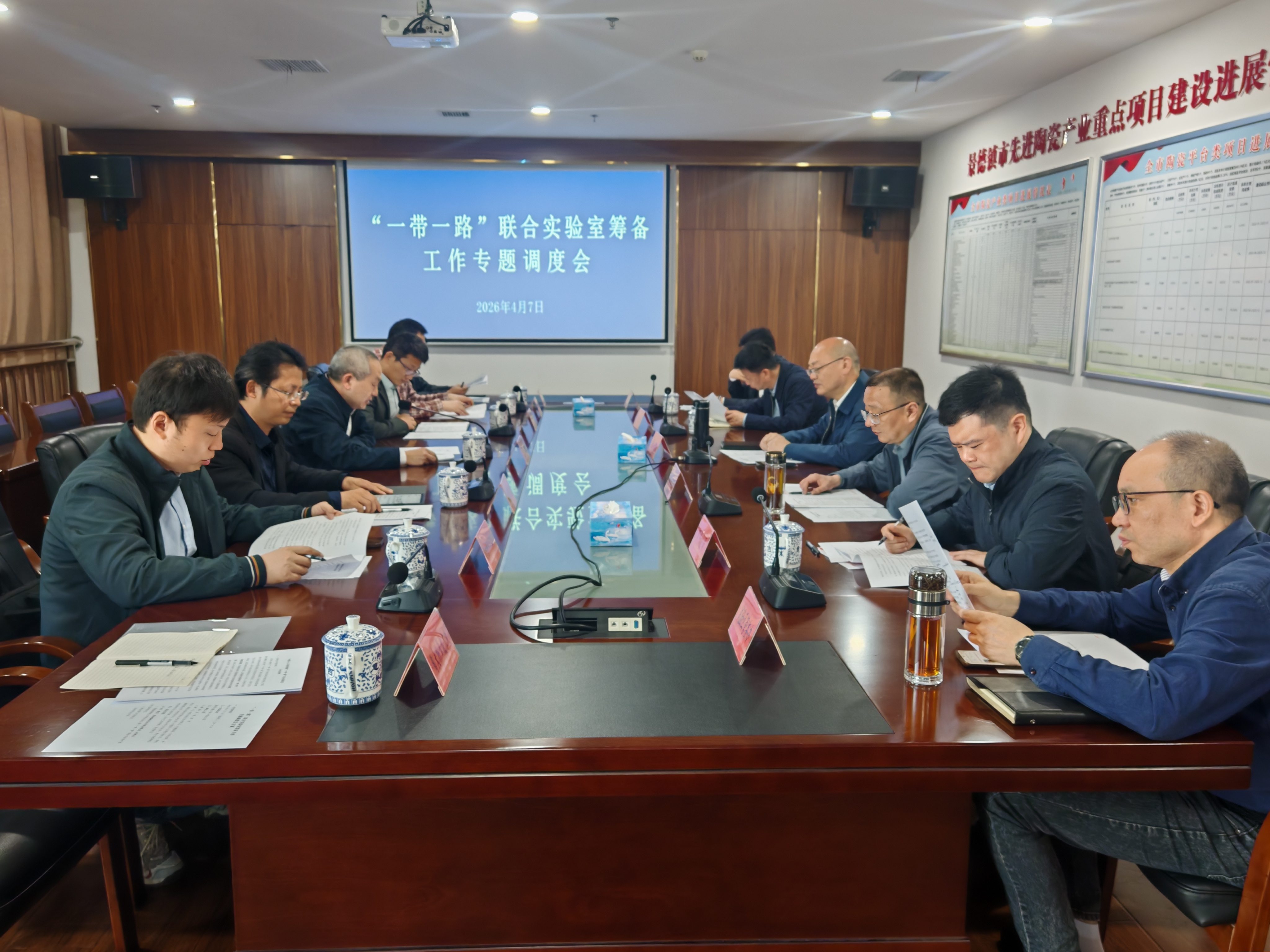 本网讯(科学技术处 程磊)为扎实推进“一带一路”联合实验室建设,深化校地协同联动,4月7日上午,“一带一路”联合实验室筹备工作专题调度会在新城大厦B栋5楼会议室召开。景德镇市委副书记吴隽,校党委常委、副校长黄勇出席会议,校地相关部门负责人参加会议。