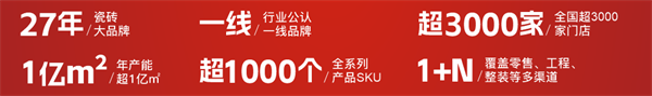 宏陶瓷砖,27年一线大品牌,全国超3000家门店,年产能超1亿㎡,SKU超1000个。2024-2026年,宏陶完成了品牌形象的全面焕新——“高品质·真防滑”的核心价值主张深入人心。从VI视觉到品牌大片,每一次亮相都在为终端溢价铺路。