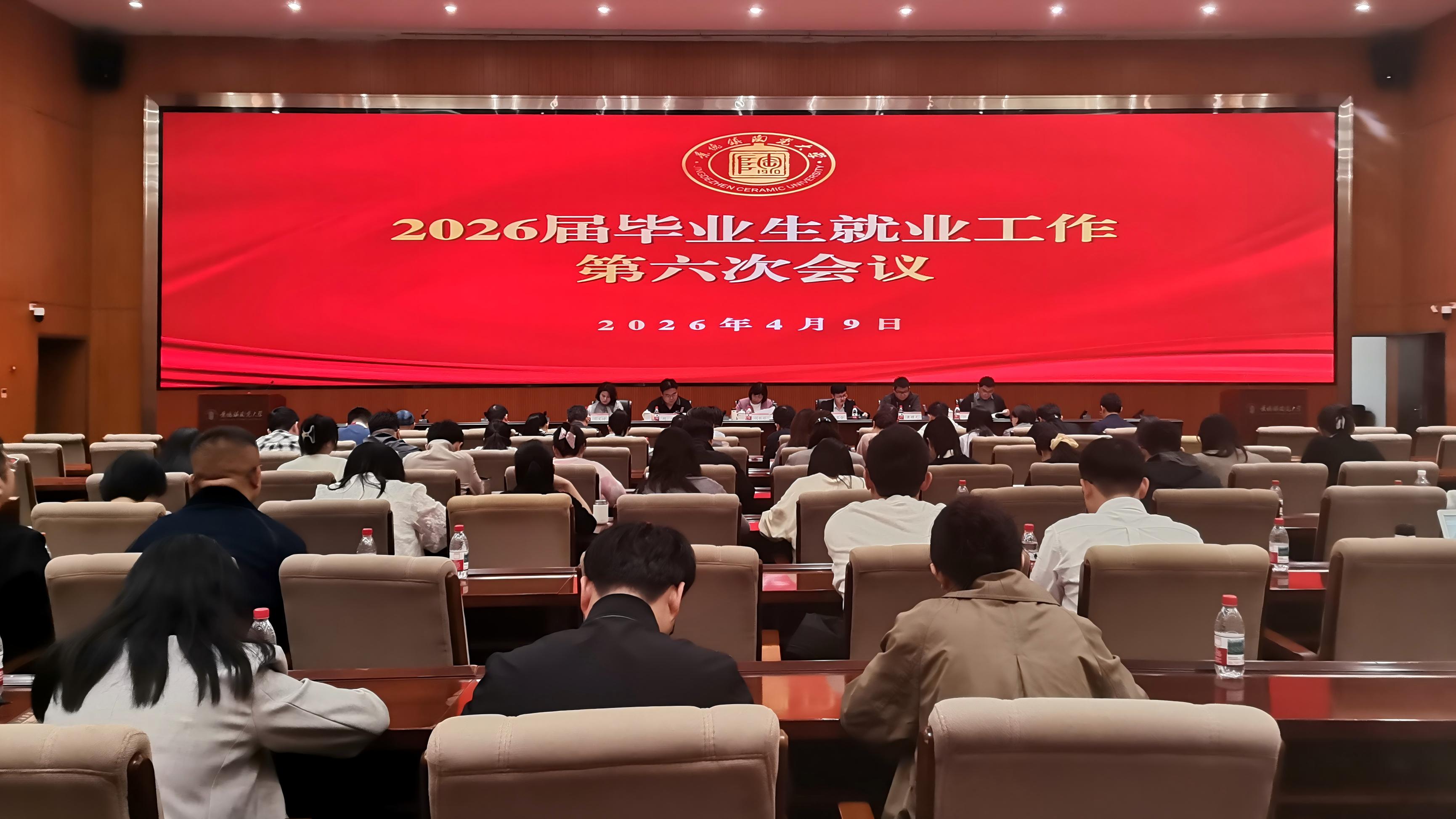 本网讯(招生就业处 孙传浩)4月9日,我校在湘湖校区国际学术报告厅召开2026届毕业生就业工作第六次会议。会议传达学习全国、全省高校毕业生等青年就业创业工作视频会议精神,精准研判当前就业形势,系统部署下一阶段就业重点工作。校党委常委、副校长胡银娇主持会议并讲话。党委武装部、团委、教务处(创业学院)、招生就业处相关负责人,各学院党政主要领导、分管领导、就业辅导员及毕业班班主任参会。
