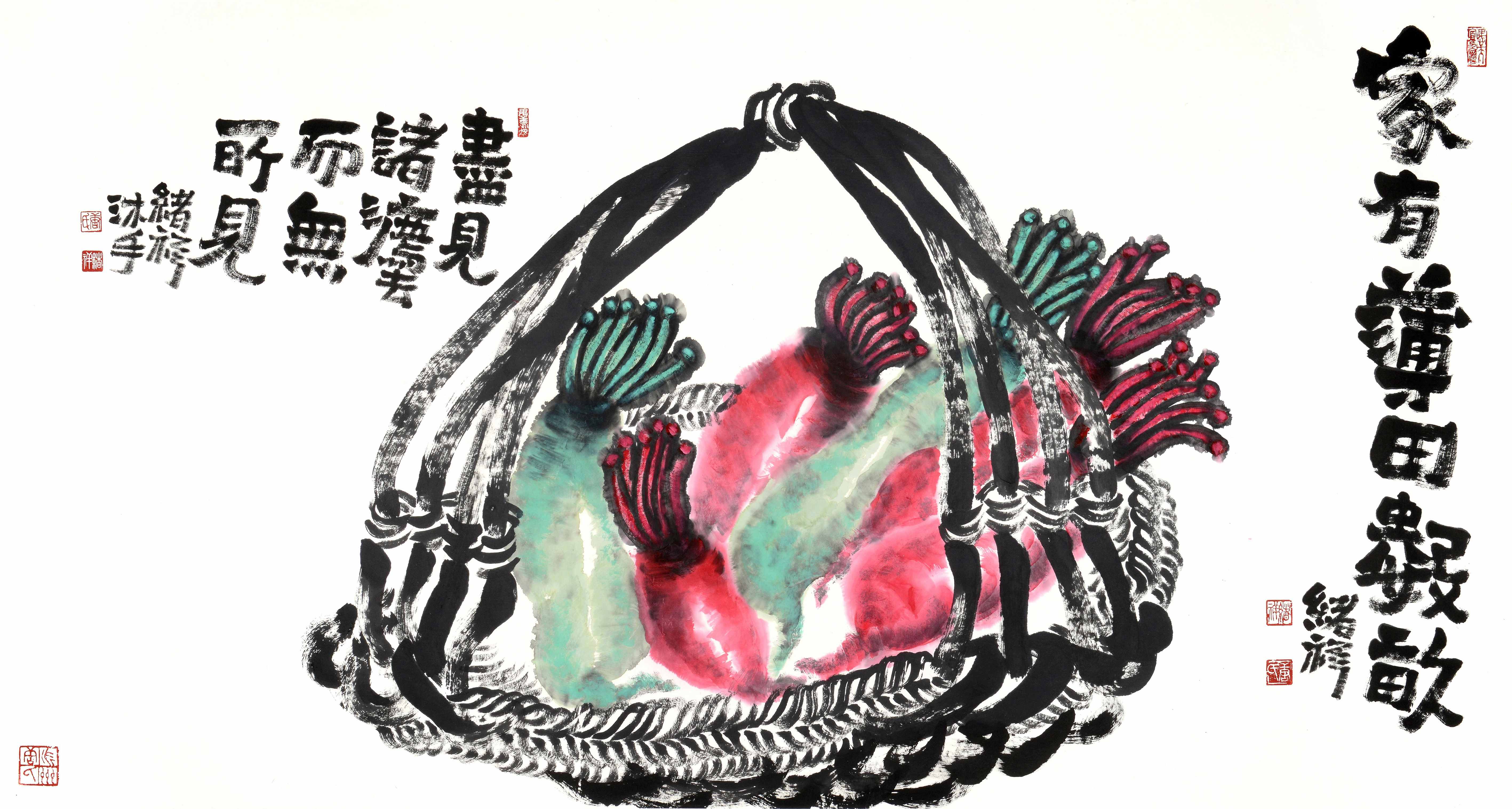 唐绪祥的绘画作品“心随笔运,取象不惑”。他的“自家山水”的一景一物都是诗心气象,“自家果疏”的一味一品都是心灵镜像。